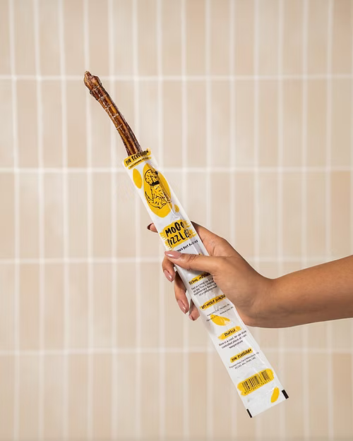 Moo Pizzlez is a whole beef bully stick that satisfies your pup’s natural urge to chew. Packed with protein and full of texture, it’s a long-lasting treat that supports mental stimulation and keeps teeth and gums healthy — perfect for dedicated chewers who love a tasty challenge.