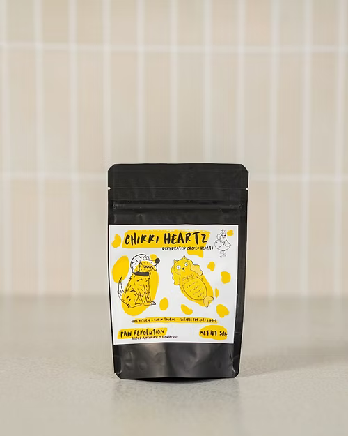 Chikki Heartz are single-ingredient dehydrated chicken hearts, packed with natural protein, taurine, and essential vitamins to support muscle and heart health. This 30g bag provides a nutrient-dense, delicious treat for adult dogs and cats of all breeds, offering a wholesome way to support your pet’s vitality and energy.
