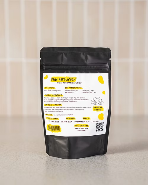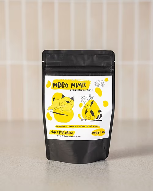 Moo Miniz are premium, single-ingredient beef treats made from 100% high-quality beef, naturally dried to preserve flavor, texture, and nutrients. Rich in protein, iron, and essential nutrients, they support lean muscle maintenance, chewing satisfaction, and overall vitality, making them perfect for training, rewarding, or everyday snacking for dogs and cats of all breeds, sizes, and life stages.